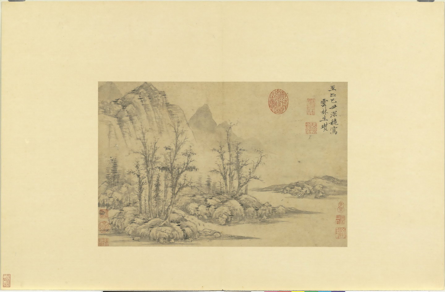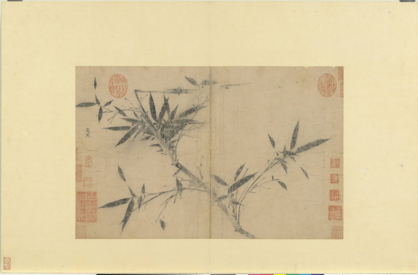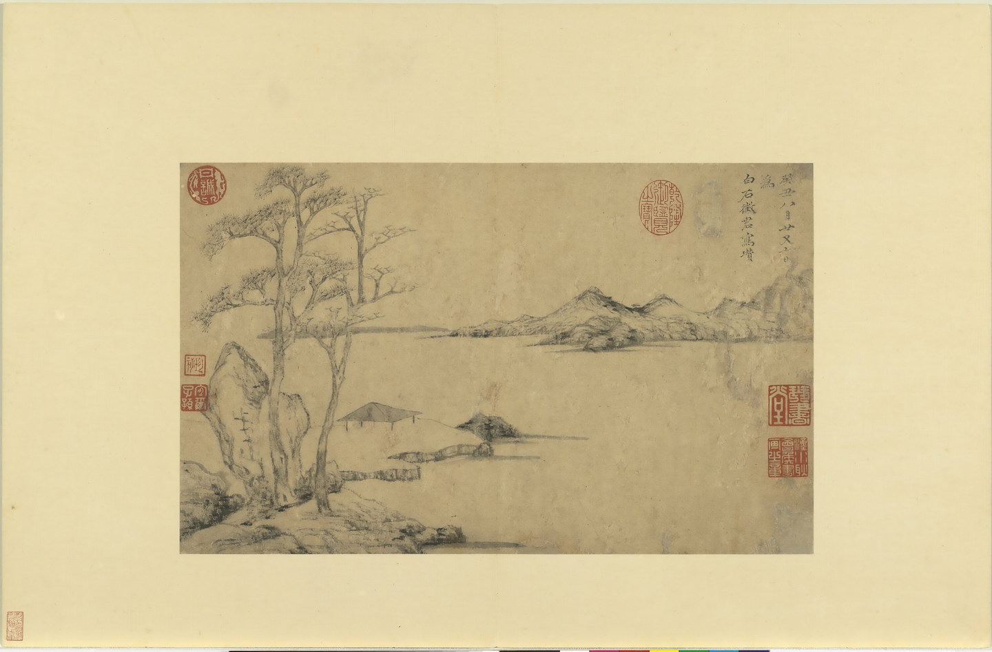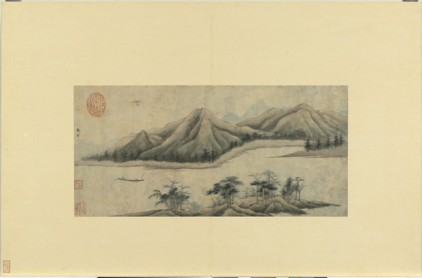 | 简介说明 | 《历朝名绘》册集结了历代名家作品(真赝并存)共十二开,包含:五代巨然《山水》,赵幹《山水》;宋代文同《画竹》,扬无咎《画竹》,马和之《古木流泉》《清泉鸣鹤》;元代赵孟頫《调良图》,倪瓒《灌木流泉》《松溪亭子》;明代盛著《秋江钓艇》,沈周《溪山秋景》。 |