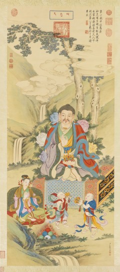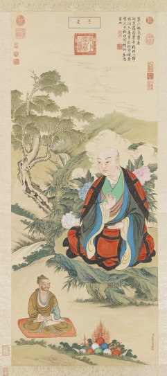 品名作者 十六应真像·第十一租查巴纳塔嘎尊者图,清代,丁观鹏 形制尺寸 图轴,纸本,设色,135&#…